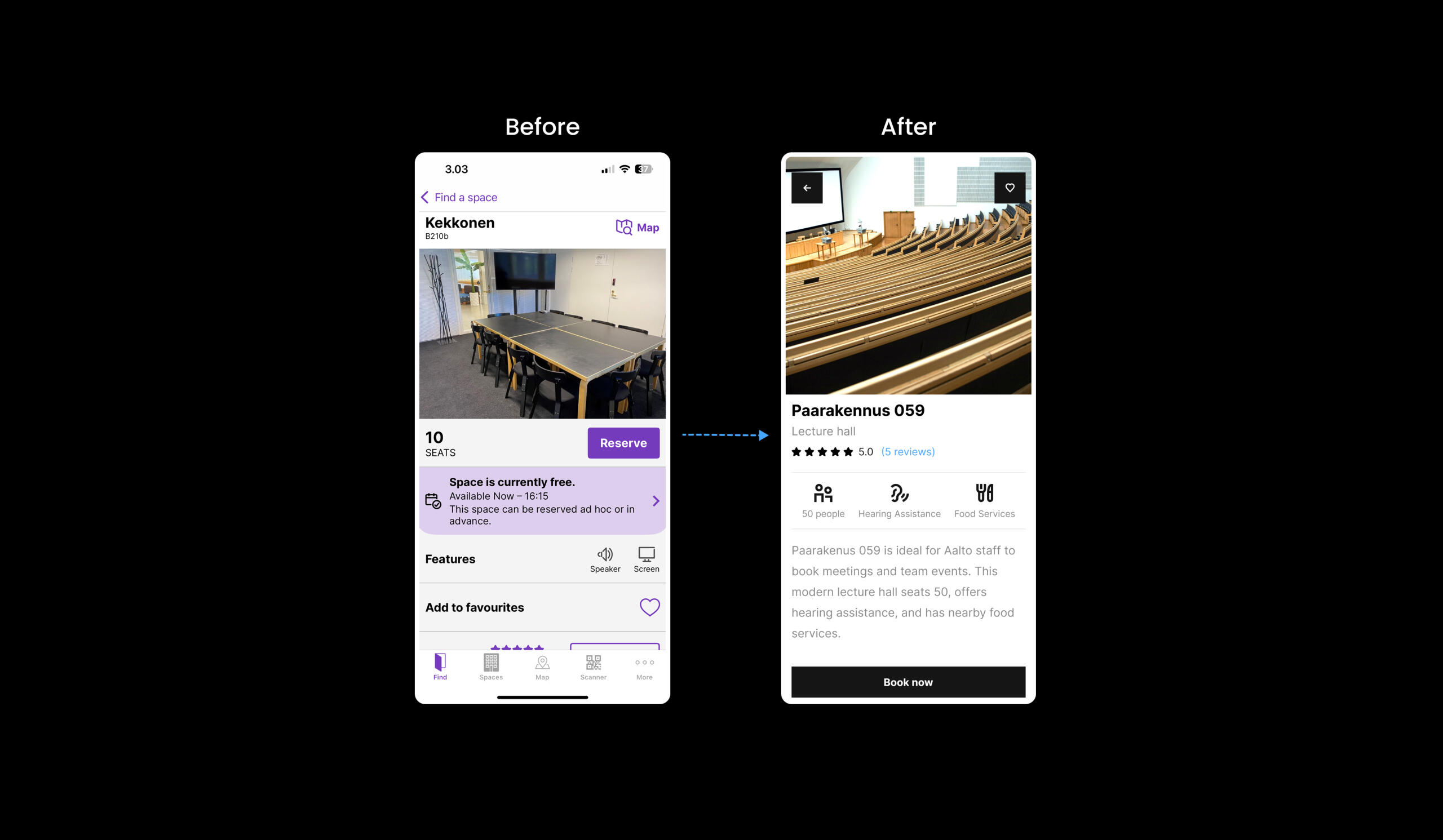 Aalto’s apps and digital touchpoints, from startups to project sites, lacked brand consistency, weakening the university’s identity. The community design system offered flexible, accessible tools to unify designs and cut costs for teams hiring external partners by streamlining development.I used the design system to revamp apps like Aalto Space, which lacked brand alignment. By applying consistent components, we improved user experience, ensured accessibility, and reflected Aalto’s identity across digital platforms.