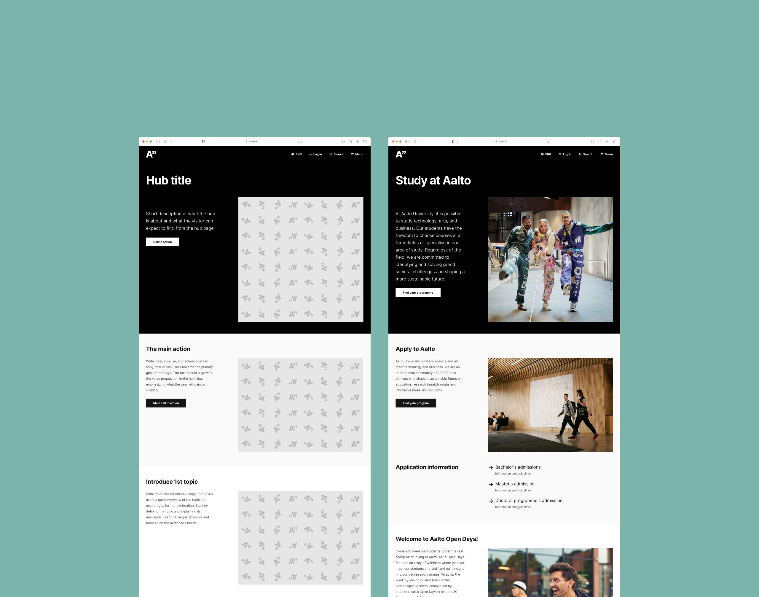 Designed five Figma templates for web and mobile after interviewing Aalto’s community to address adoption barriers, empowering anyone at Aalto to create branded content from articles to hub pages. The kit simplified workflows, enabling startups to launch apps and students to design school pages faster.